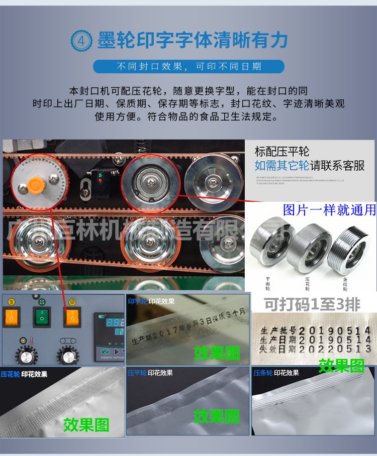 產(chǎn)品說明 本機(jī)是新一代集印碼,封口,連續(xù)輸送為一體的自動薄膜封口機(jī),具有印字清晰、顔色可選、即印即干、換字方便等特點(diǎn)。 技術(shù)參數(shù)